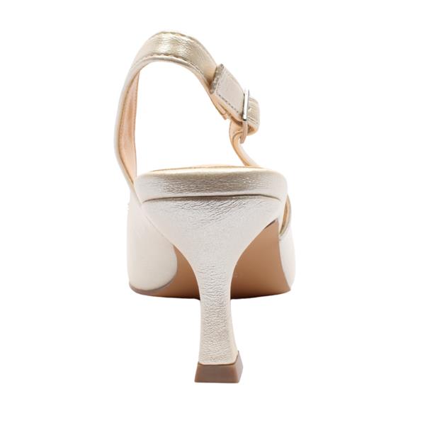 Brand: Sorento Style: Marlfield Colour: Pearl Removable Insole: No Closure: Sling back with buckle Heel Height: Approx 6cm Materials: Synthetic upper & lining & manmade sole