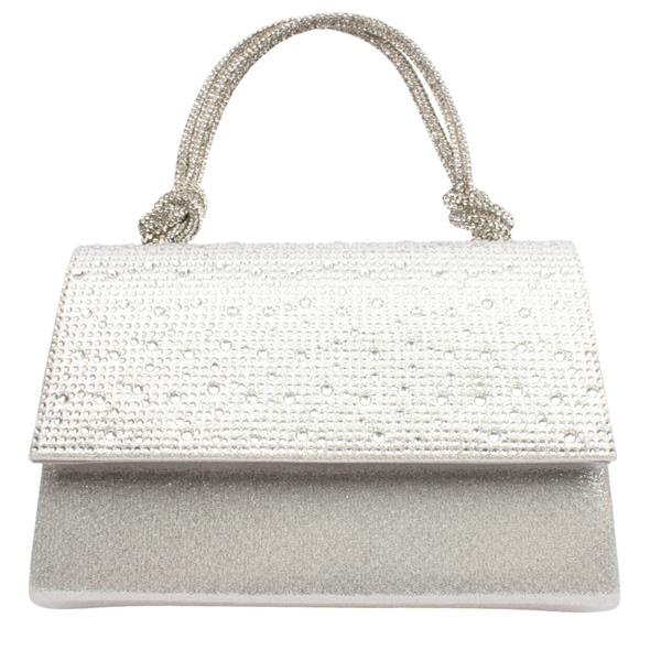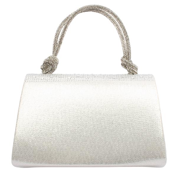 Add a touch of elegance to any outfit with the Sorento Dress Bag. Finished in a silver shimmer, this stylish bag features both a detachable long shoulder chain and a silver diamonte knotted strap, giving you versatile styling options for day or evening wear.