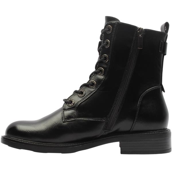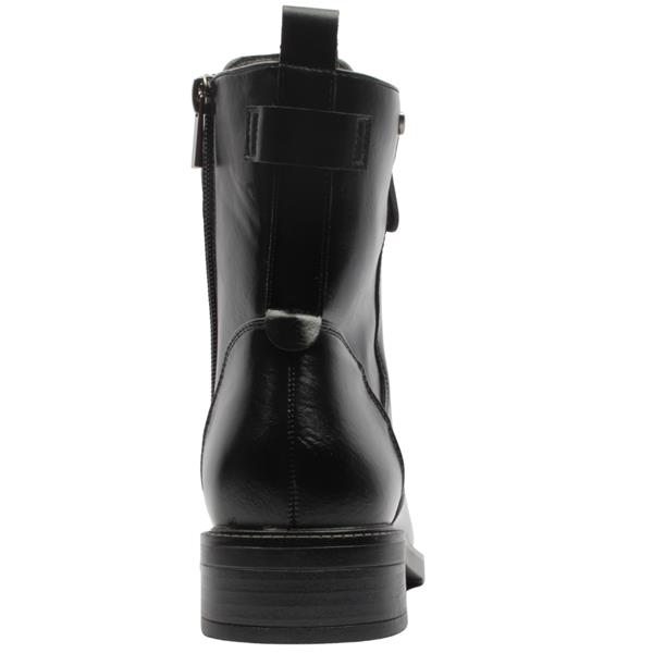 Embrace edgy elegance with these womens biker boots from Susst shoes. Crafted with a sleek black upper, this boot features a decorative faux outer zip that adds a touch of rebellious flair. The combination of lace up front and inner zip closure ensures a secure and adjustable fit. The elevated heel not only enhances your stature but also complements the boot's bold aesthetic.