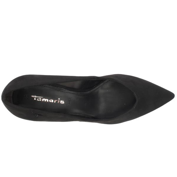 Brand: Tamaris Style: 22453 Colour: Black Suede Closure: Slip on Removable Insole: No Heel Height: Approx. 7cm Materials: Textile Upper, Synthetic lining & manmade sole