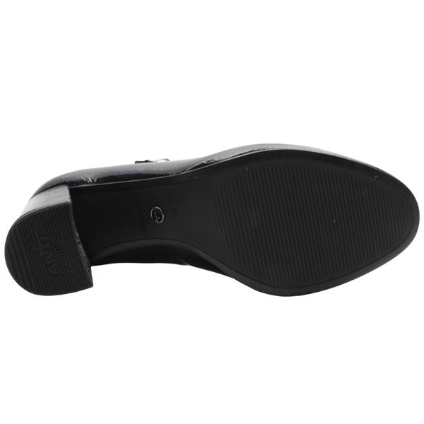 Step into style in these timeless Mary Jane heels from Tamaris Shoes. Crafted in sleek navy patent upper, these shoes feature a classic rounded toe and a block heel that offers both stability and style. The adjustable strap with a metallic buckle ensures a secure fit while adding a touch of vintage charm. Whether you're dressing up for a formal event or adding sophistication to your workwear, these heels combine comfort with effortless chic.