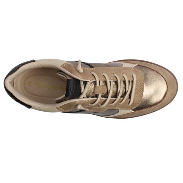 Brand: Tamaris Style: 23662-45 Colour: Gold Multi Closure: Elastic Lace Removable Insole: Yes Heel Height: Approx 2.5cm Materials: Synthetic upper, textile lining & manmade sole