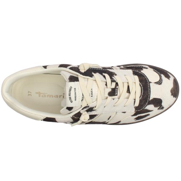 Brand: Tamaris Style: 23729-46 Colour: White Brown Closure: Elastic Laces Width: Average Removable Insole: Yes Materials: Manmade Upper, Manmade Lining and outsole.