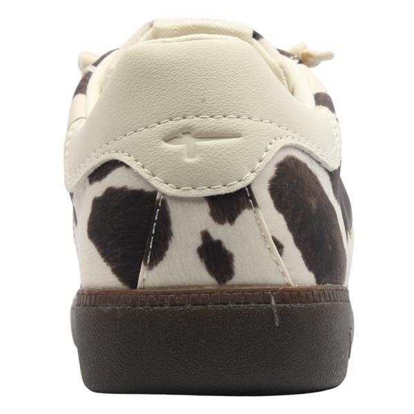 Add a bold statement to your everyday style with the Tamaris Ladies Runner 23729 in eye-catching cow print. Designed for women who love combining comfort with standout fashion, this sporty silhouette brings a playful edge to casual looks. Crafted with a durable manmade upper, this runner offers a lightweight feel while maintaining structure and support. The striking cow print design adds personality, making it the perfect choice for elevating simple outfits. Featuring elastic laces, this style allows for easy slip-on wear and a secure, flexible fit — ideal for busy days on the go. The removable insole provides added versatility, allowing you to customise your comfort or insert orthotics if needed.