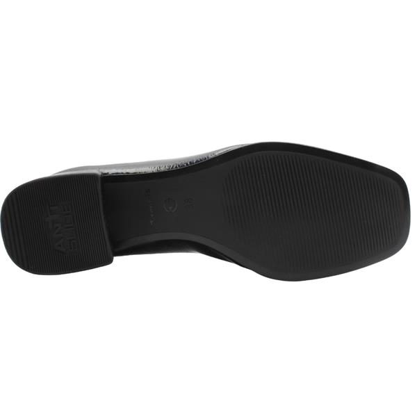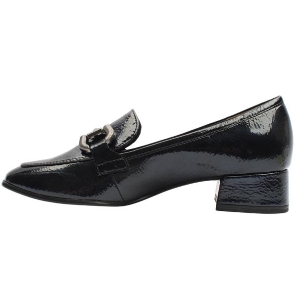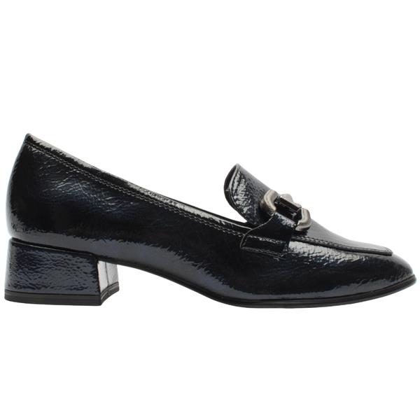Womens patent Loafers with a low block heel from Tamaris Shoes designed for both comfort and sophistication. Crafted with a navy patent upper, these loafers feature a chic buckle detail across the vamp, adding a refined touch to their classic silhouette. The low block heel offers subtle lift while ensuring stability and all-day wearability.The soft memory foam insole adapts to your feet, so you stay comfortable even on long office days or casual outings.