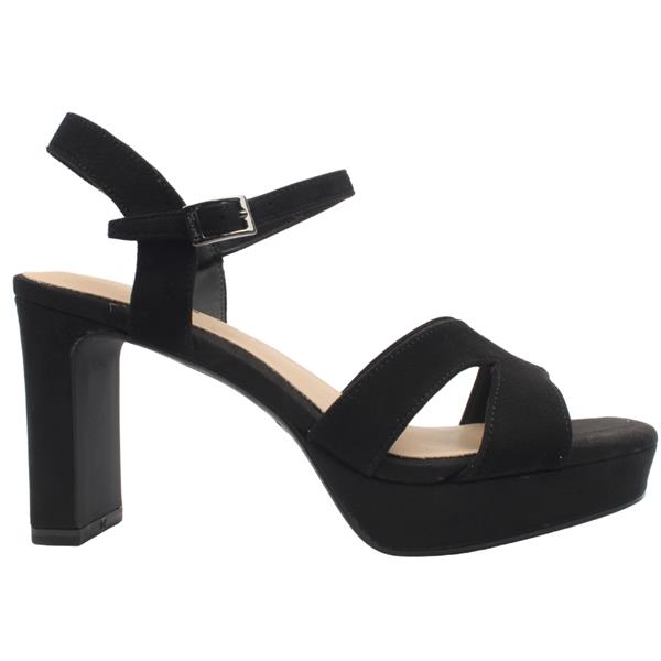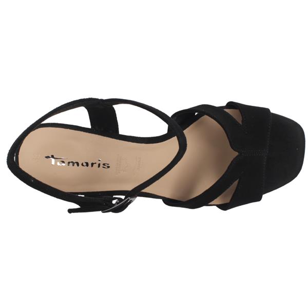 Brand: Tamaris Style: 28309-42 007 Colour: Black Closure: Buckle Heel Height: Approx 9cm & 2.5 cm platform Materials: Faux Suede upper, synthetic lining & manmade sole