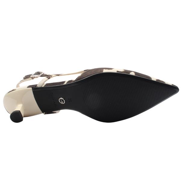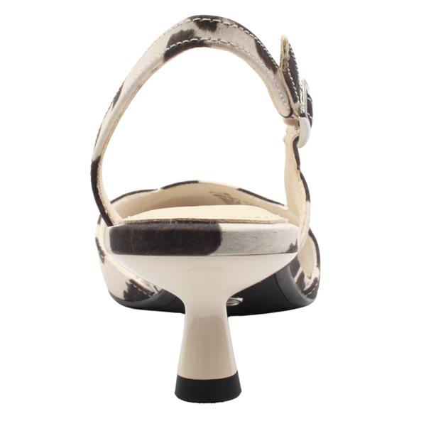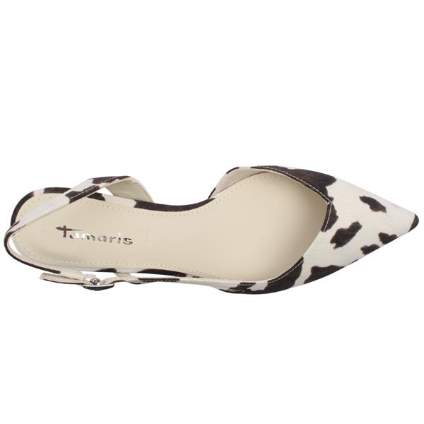 Add a bold yet sophisticated touch to your wardrobe with these stylish ladies sling back shoes from Tamaris. Featuring a striking cow print upper, this fashion-forward design brings personality to a classic silhouette, making it perfect for elevating both smart and casual outfits. The elegant pointed toe creates a sleek, flattering shape, while the shaped “V†front adds a modern and distinctive detail to the design. Set on a comfortable kitten heel, the shoe offers just the right amount of lift for all-day wear without compromising on comfort. An adjustable back strap ensures a secure and personalised fit, completing this chic and versatile sling back style.
