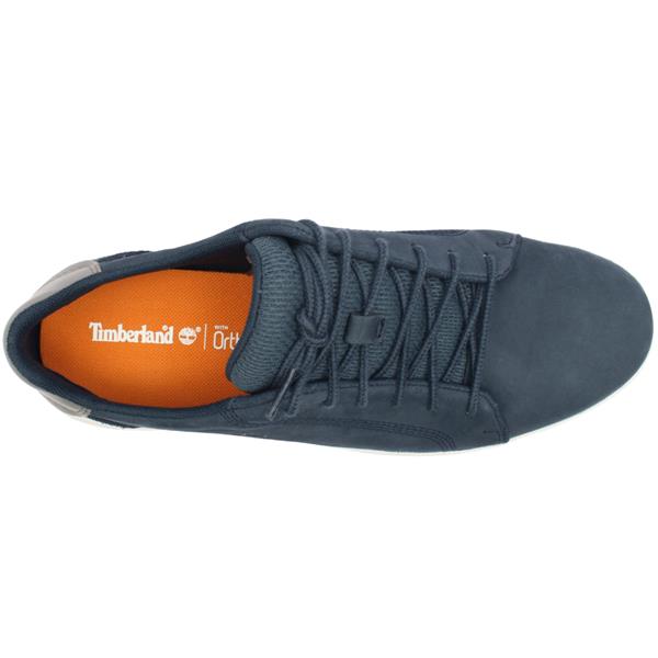 Step into comfort with mens casual shoes from Timberland shoes. Crafted in rich blue with a contrasted grey heel cap and suede heel overlay. Lace up design ensures a precise customizable fit. Equipped with a removable Ortholite foam insole for long lasting cushioning and a breathable feel. A crisp white sole gives a modern contrast to the upper.