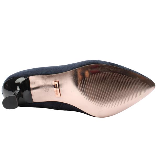 Step out in timeless elegance with the Una Healy Ladies Dressy Ankle Boots - A Fire Love. Crafted in versartile navy faux suede, this dressy boot features a shaped medium heel that adds height while keeping comfort in mind. The pointed toe brings a sophisticated finish, perfect for both day-to-night styling. Designed with a convenient side zip, it is easy to slip on and off, making it as practical as it is stylish.