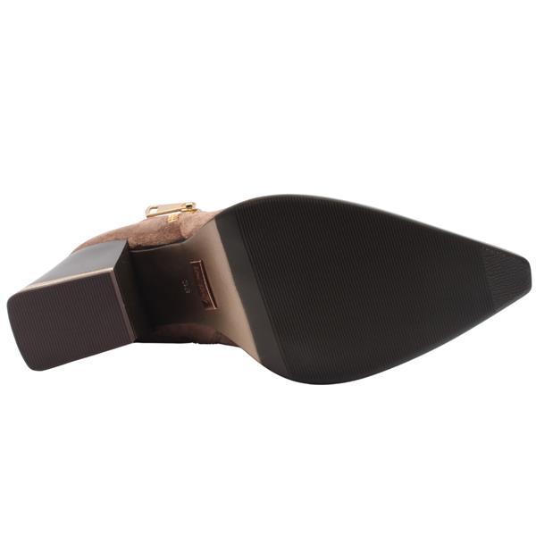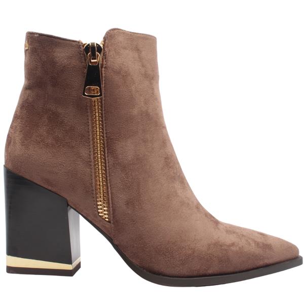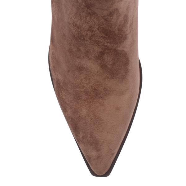 Sophisticated with a touch of edge, these Una Healy boots are designed to elevate everyday looks. Crafted in a dark beige faux suede finish, the upper is styled with a refined pointed toe that adds elegance and elongates the leg line. Functional on the inner side for easy on/off, and a faux zip detail on the outer side for a chic, fashion forward accent. A sturdy block heel delivers the perfect balance of style and stability.