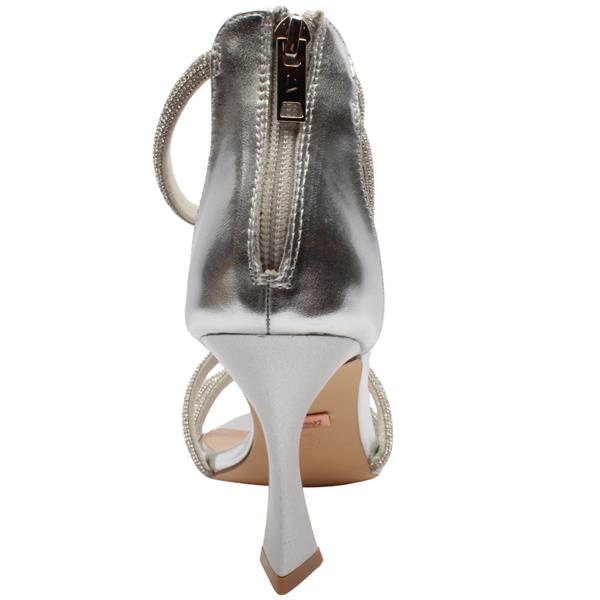 Step into glamorous style with these gorgeous ladies heel sandals from Una Healy shoes. These elegant strappy heels feature a shimmering silver diamante upper that catches the light beautifully. The delicate straps frame the foot for a flattering and feminine silhouette while the slim tall heel adds height and sophistication. A zip at the back of the ankle ensures a secure fit.