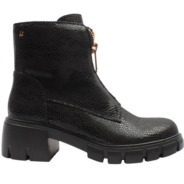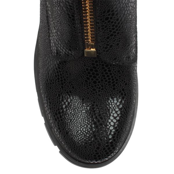 Step out in effortless sophistication with the Una Healy boots, Mercy Now. These Ladies Ankle Boots are crafted in a striking black viper textured material, this statement style blends modern edge with timeless elegance. A sleek gold zip detail on the front and at the side adds a touch of glamour.