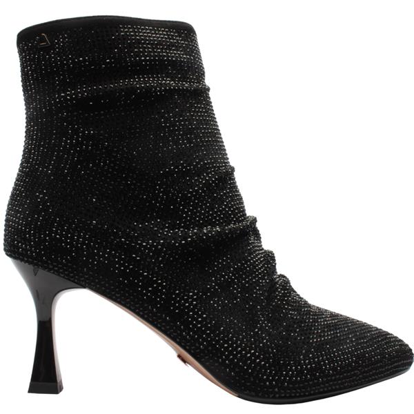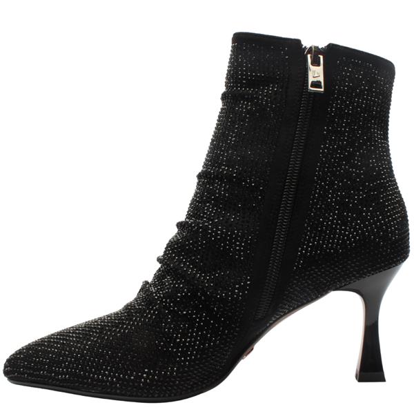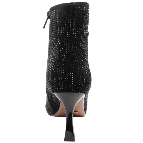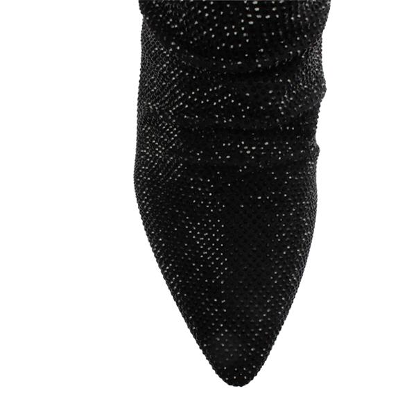 Bring dramatic sparkle and elegant flair to your evening with womens boots from Kate Appleby shoes. Crafted in a shimmering black sparkle fabric, the upper is encrusted with diamante detailing that catches the light with every step. A sleek side zip ensures easy on-off access. Set on a slim, elegant stiletto heel, the Piano Picker boot elongates your leg line.