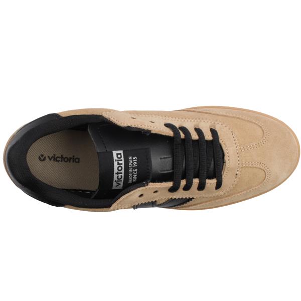 Step up your everyday style with these ladies trainers from Victoria shoes. Crafted in soft dark beige suede for a premium look and feel, this modern trainer combines minimalist design with sporty edge. Sleek black detailing adds contrast and versatility, making it easy to pair with both casual and smart-casual outfits. The lightweight sole ensures all-day comfort, while the cushioned footbed offers excellent support whether you're out for a stroll or on the move. Finished with subtle branding and a clean silhouette, this runner delivers timeless appeal with contemporary flair.