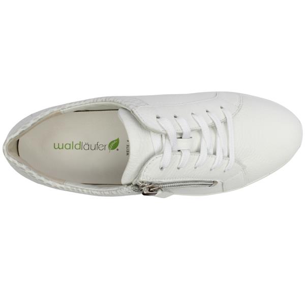 Step out in effortless style and comfort with womens extra wide fitting shoes from Waldlaufer shoes. The soft white leather upper gives a clean and classic look while silver accents on the ankle and heel add a touch of flair. A combination of lace fastening and side zip ensures a secure fit and easy on and off. Crafted in a comfortable K fitting this shoe provides extra width for optimal comfort.