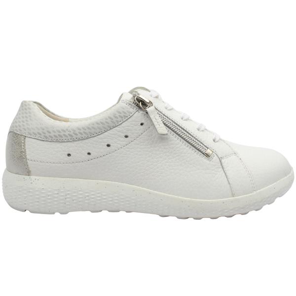 Brand: Waldlaufer Style: 634002 Colour: White Silver Closure: Lace & Zip Heel Height: Approx. 3CM Removable Insole: Yes Width: 'K' Extra Extra Wide Fitting Materials: Leather Upper, leather/Textile insole & lining, Manmade Outsole.