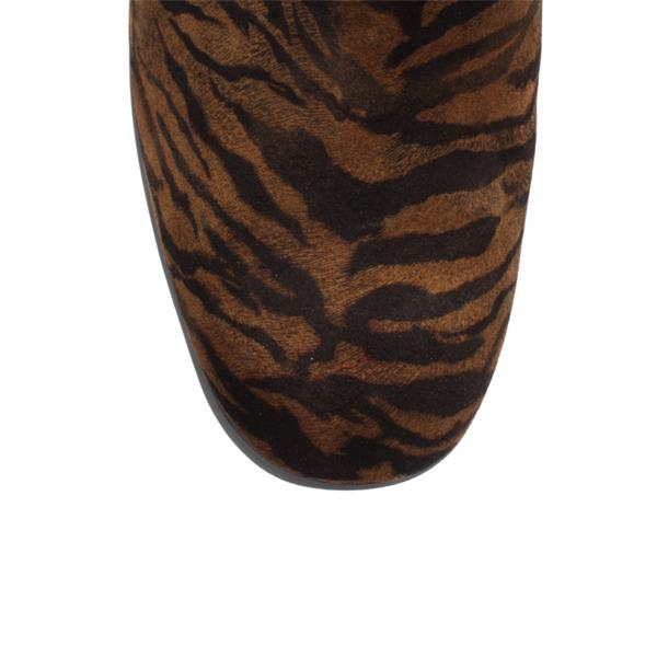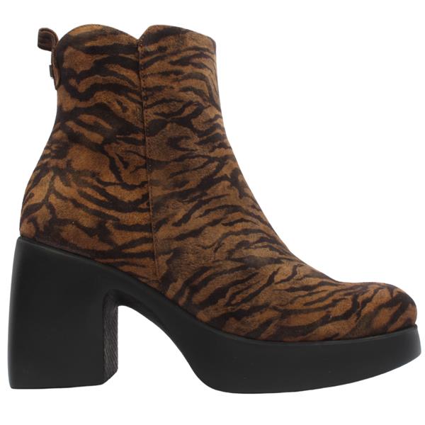 Step out in bold style with these statement ankle boots from Wonders Shoes. Featuring a striking zebra print on rich tan suede. The sleek silhouette is elevated by a chunky block heel and platform sole in matte black, offering both comfort and a modern edge. A side zipper and rear pull tab ensure easy wear. These Wonders boots are crafted with innovative Wonderfly Technology for enhanced comfort wearability.