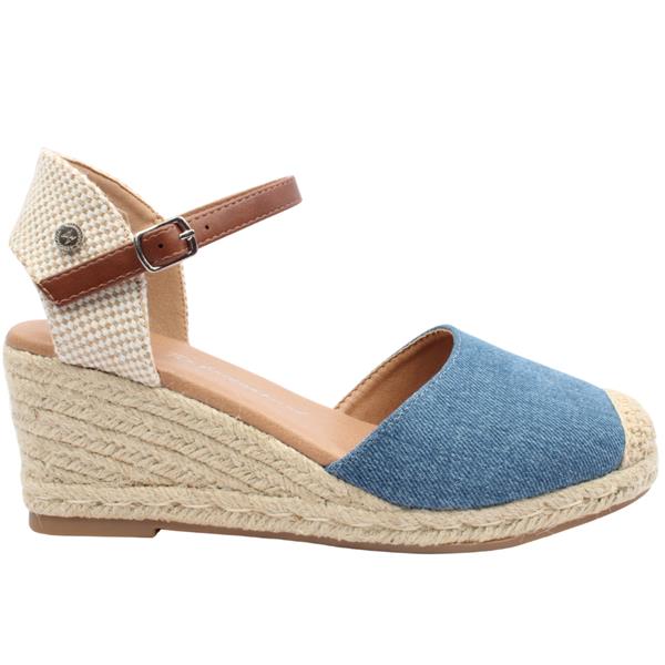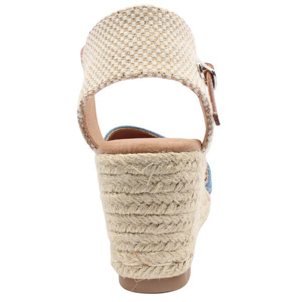Stylish and easy to wear, these XTI espadrilles are a perfect choice for warm-weather dressing. Featuring a soft denim upper, these espadrilles showcase a classic toe-covered, heel-open design for a light and breathable feel. The adjustable buckle strap ensures a secure fit, while the woven wedge sole adds height with comfort and a timeless summer look. Ideal for pairing with dresses, skirts, or casual denim.