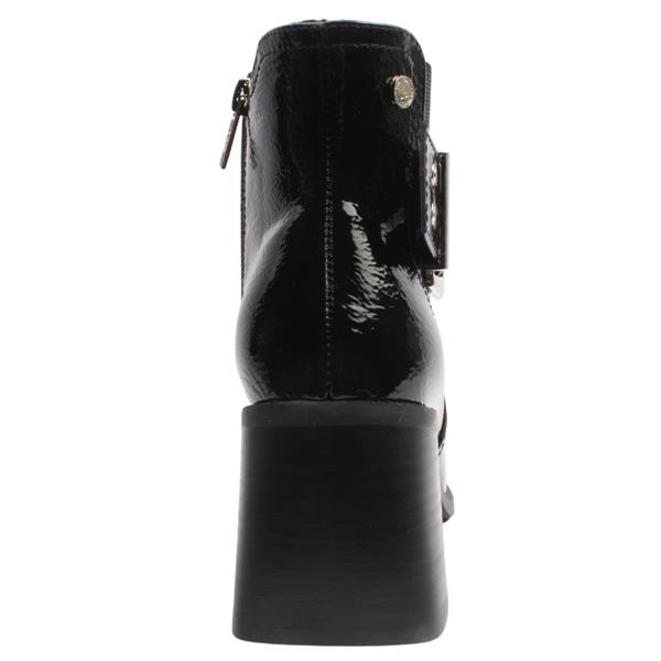 Step up your style game with these ladies Ankle Boots from XTI Shoes, a perfect blend of modern design and timeless appeal. Crafted in a black patent finish with large buckle detail for a trendy element .The stacked block heel adds stability and a stylish lift to these boots. Whether paired with skinny jeans or a flowing dress, these boots bring effortless elegance to any outfit.