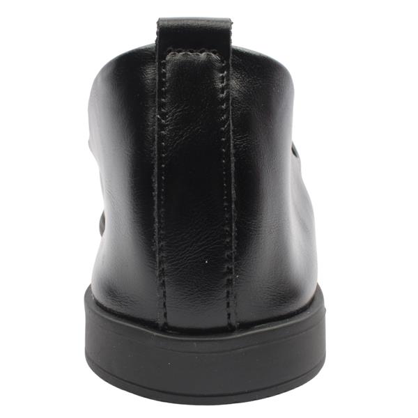 Zanni & Co ladies slip on shoes, designed to elevate your everyday style. Crafted with a soft black upper, they offer a versatile look. A gold brooch detail adds a touch of sophistication and charm, making these shoes perfect for both casual outings or office looks. The peep toe design enhances breathability while giving a flattering, feminine finish. Set on a low, comfortable sole, these shoes are ideal for all day wear.