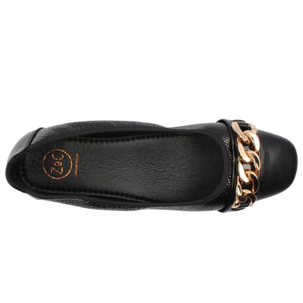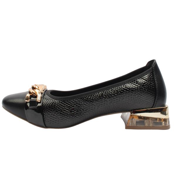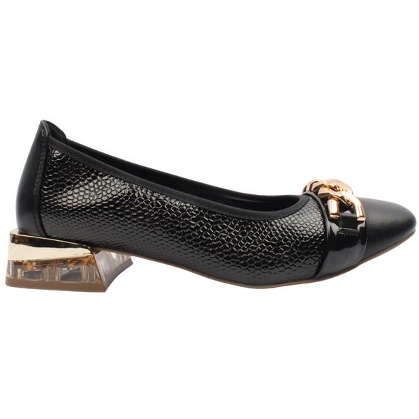 Step into style with these ladies pumps, designed for both style and comfort. Featuring a sleek 3cm heel, these pumps offer just the right amount of lift for all-day wear. The black upper & polished gold chain detail at the toe adds a sophisticated touch, making them the perfect blend of classic and contemporary fashion. Crafted for versatility, these pumps seamlessly complement office attire, evening wear, or casual-chic outfits.